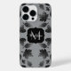 Sparkly grey silver leaves autumn pattern Monogram iPhone Case