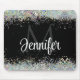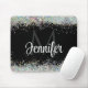 Trendy Girly Sparkles Rose Gold Glitter Custom Name Monogram Black Mouse Pad