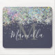 Trendy Girly Sparkles Rose Gold Glitter Custom Name Monogram Blue Mouse Pad