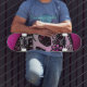 Sparkly Hot Pink Glitter Sugar Skull Tattoo Design Skateboard