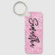 Create your own long rectangle metal keychain for her featuring a luxury faux light pink glitter digital art graphic.