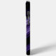 Sparkly metal neon purple black galaxy chevron Monogram iPhone 15 Case. Personalise with your initial and name. Abstract sparkly metallic black and violet galaxy stripes lines digital design. No actual sparkles!