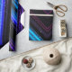 Abstract sparkly metallic blue, purple, pink, black, red galaxy lines.