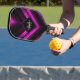 Sparkly metallic hot pink black chevron Monogram Pickleball Paddle