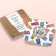 This glamourous and modern tumbler crafter square business card is perfect for any professional crafter. It features faux printed sparkly glitter tumbler cup pattern on top of a white simple background. The colour scheme includes teal green, pink, gold, lime green, navy blue, pastel blue, yellow, and magenta. It has a spot to switch out your business logo and add your social media information so customers can find you. It's fun, cool, pretty, and chic; the perfect design to attract potential customers.
