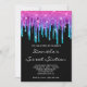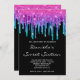 Sparkly Pink Teal Gradient Drip Black Sweet 16 Invitation