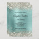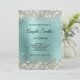 Sparkly Platinum Glitter Turquoise Foil Monogram Invitation