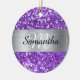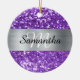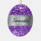 Sparkly Purple Glitter Silver Foil Monogram Ceramic Ornament
