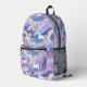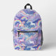 Sparkly rainbow and unicorns on clouds printed backpack
