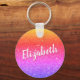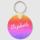 Faux sparkly rainbow personalised keychain for her featuring a rainbow background resembling a lot of shiny sparkling stars and an off white distressed custom name Elizabeth that you can personalise and change into your name or any custom name you wish to use.