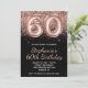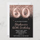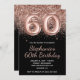 Sparkly Rose Gold Glitter Black Number 60 Birthday Invitation