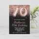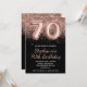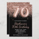 Sparkly Rose Gold Glitter Black Number 70 Birthday Invitation