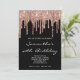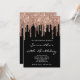 Sparkly Rose Gold Glitter Drips Black Birthday Invitation