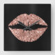 Sparkly Rose Gold Glitter Lipstick Black Foil Square Wall Clock