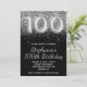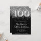 Sparkly Silver Glitter Black 100th Birthday Invitation