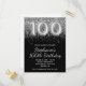 Sparkly Silver Glitter Black 100th Birthday Invitation Postcard