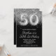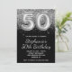 Sparkly Silver Glitter Black Balloon 50th Birthday Invitation