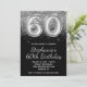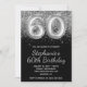 Sparkly Silver Glitter Black Balloon 60th Birthday Invitation