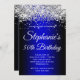Sparkly Silver Glitter Black Medium Blue Gradient Invitation