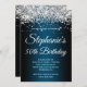 Sparkly Silver Glitter Black Ocean Blue Gradient Invitation
