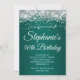 Sparkly Silver Glitter Dark Turquoise Gradient Invitation