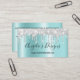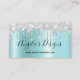 Sparkly Silver Glitter Drips Light Turquoise Ombre Business Card