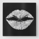 Sparkly Silver Glitter Lipstick Black Foil Square Wall Clock