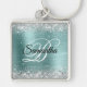 Sparkly Silver Glitter Mint Teal Foil Monogram Key Ring