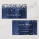 Sparkly Silver Glitter Navy Blue Satin Foil Business Card