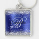 Sparkly Silver Glitter Sapphire Blue Foil Monogram Key Ring