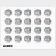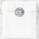 Create your own classic round sticker with faux sparkly silvery grey confetti chunky style glitter paired with faux shimmery silver brushed metallic foil strip for the monogram.