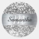 Sparkly Silver Glitter Shimmer Monogram Classic Round Sticker