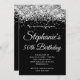 Sparkly Silver Glitter Solid Black Background Invitation