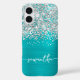 Sparkly Silver Glitter Turquoise Blue Glam Name Case-Mate iPhone Case