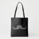 Sparkly silver mosaic Moustache on Black Tote Bag