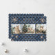 Beautiful blue buffalo plaid photo collage holiday card featuring snowflakes and stars. Easily personalise this cute holiday card with your photos and text.