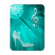 Elegant, glamourous Magnet. Beautiful, dazzling, trendy printed image teal blue / turquoise sparkles diamonds bling jewels musical note, funky retro disco mirror ball and stiletto high heel fashion shoe on a chic teal blue / turquoise printed image background. A cute, classy, fashionable, stylish, pretty gift for her or any music lover. Women and teenage girls will love this cool, fun, funky, girly design.