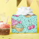 Celebrate your person's birthday with this pretty birthday gift wrap of pink and blue cupcakes on a sparkly turquoise background
