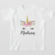 Let your little one's imagination run wild with this adorable personalized unicorn t-shirt! Featuring a cute unicorn face with sparkling gold accents, a floral crown, and long eyelashes, this shirt is perfect for kids who love all things magical. Personalize it with your child's name to create a unique and special gift for birthdays or any occasion.