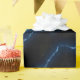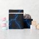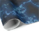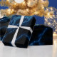 Modern white sparks and blue glitter over black background. Customisable wrapping paper template