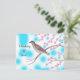 Coloured pencil drawing of a sparrow bird sitting in a Cherry Blossom Tree, with an abstract sky and cloud background, with Thinking of you, is printed on postcards. The text can easily be customised on the template form.