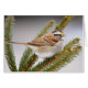 A white throated sparrow sitting on a pine tree in the winter. Taken in Pleasant Valley, NY.