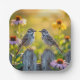 Sparrows and Cone Flowers By a Wood Fence Paper Plate