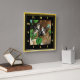 Beautiful oil painted image of Sparrows On A Tree Branch. The picture is in green and brown colors for a unique and cool look.