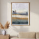 This minimalist abstract landscape artwork presents a quiet horizon of rolling hills and sparse trees, designed to bring balance and calm into modern interiors. Soft horizontal layers and a wide, open sky create a feeling of space and stillness, while the gentle contrast between warm ochre and cool slate tones adds subtle depth without visual noise.