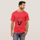 Red t-shit with helmet desing on. Helmet has red haze arond it givin impression that helmet is detached from the shirt.