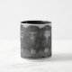 Vintage monkey statue speak, hear, see, do no evil. Black and white. 11oz. mug