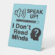 Speak Up – I Don’t Read Minds Funny Communication Pedestal Sign