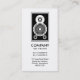 A clear stylish and attractive business card template with as attention grabbing audio speaker motif. Main company details on the front, with name and personal contact on the back, with the same motif and style.