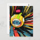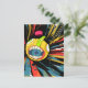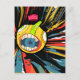 Speaker ball character in explosive background postcard